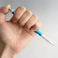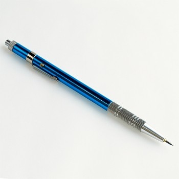 柔らかいガラスを引っかいたり、作品の名入れにも使えるプッシュ式のケガキ針です。