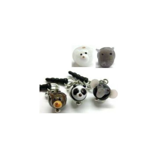 「アニマル玉 イヤホンジャック 01」シロクマ しろくま パンダ グッズ 雑貨 とんぼ玉 かわいい ストラップ スマホピアス スマホ 落下防止