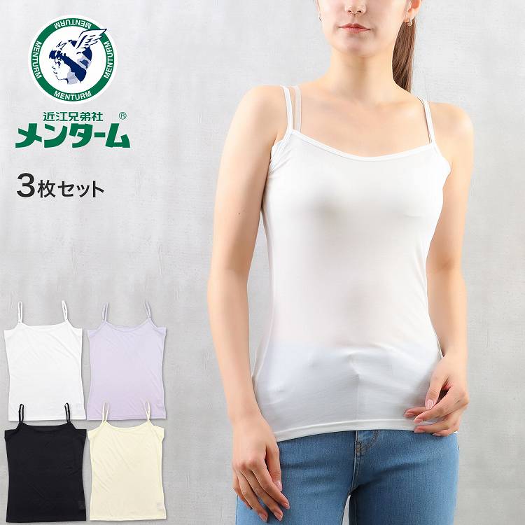 レディース キャミソール インナー 無地 接触冷感 脇汗パッド付き メンターム 3枚セット 詳細