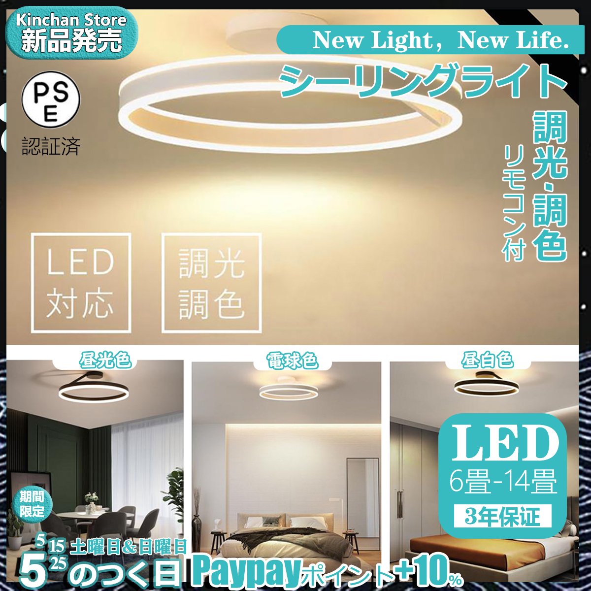 シーリングライト インテリア 明るい LED 照明器具 6~14畳 リモコン操作可能 調光調色 北欧 ライト 天井照明 寝室 和室 洋室 節電 省エネ 1年保証