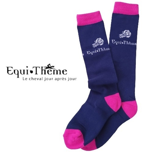 EQUI-THME ネイビー バラ ライディングソックス 乗馬靴下 乗馬 馬術