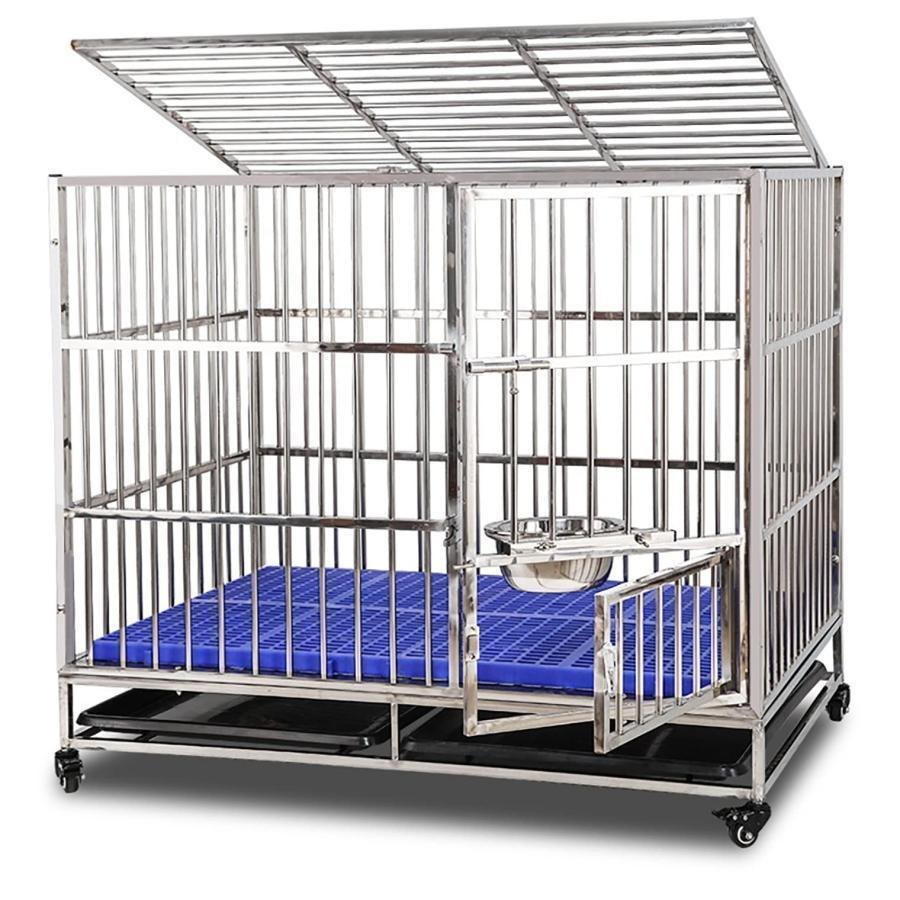 犬用ケージ あらゆる種類のペットの犬と猫に適したステンレス製の犬用ケージ、大型犬と犬用ケージ-110*72*95CM