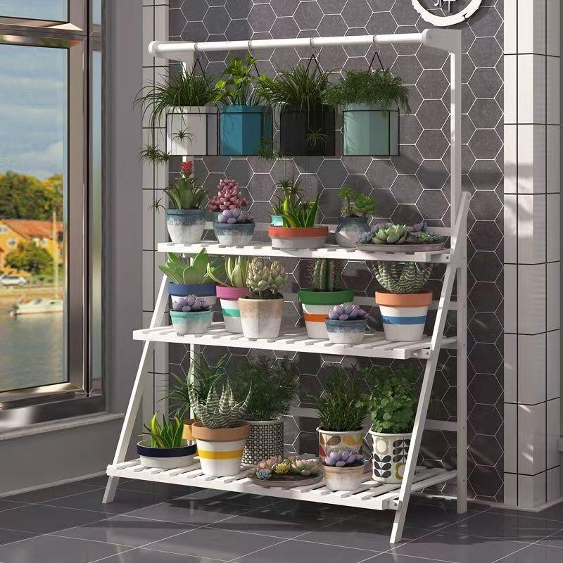 ガーデンラック 屋外 3段 プランタースタンド フラワースタンド ポール 室内 おしゃれ スリム 吊り下げ ガーデニング 花台 植物棚 園芸 GN-03WH