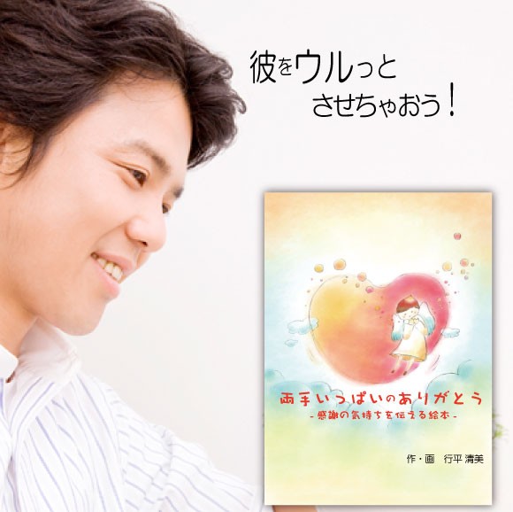 ○オリジナル絵本「両手いっぱいのありがとう」は、あなたの彼氏を主人公にして登場させることができる名入れ絵本。