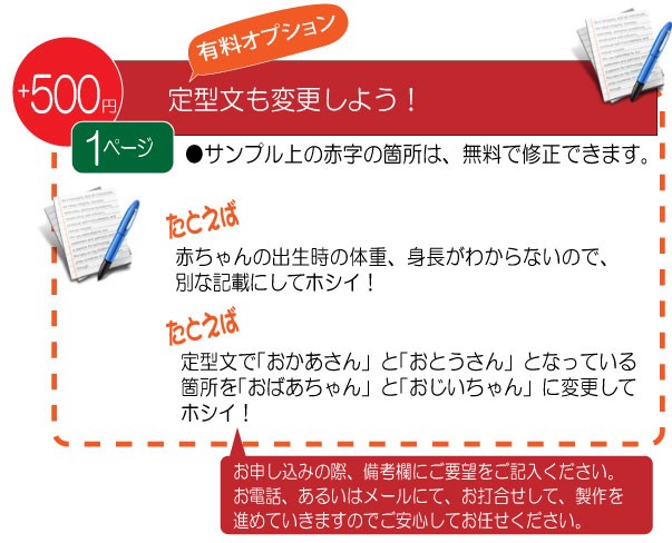 ○定型文章を修正して、あなただけのオリジナルページが作れます。