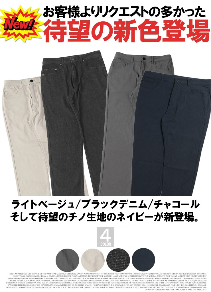 13サイズ展開のレギュラーフィットストレッチジーンズに新色のすごく伸びるストレッチチノパンツが登場です。