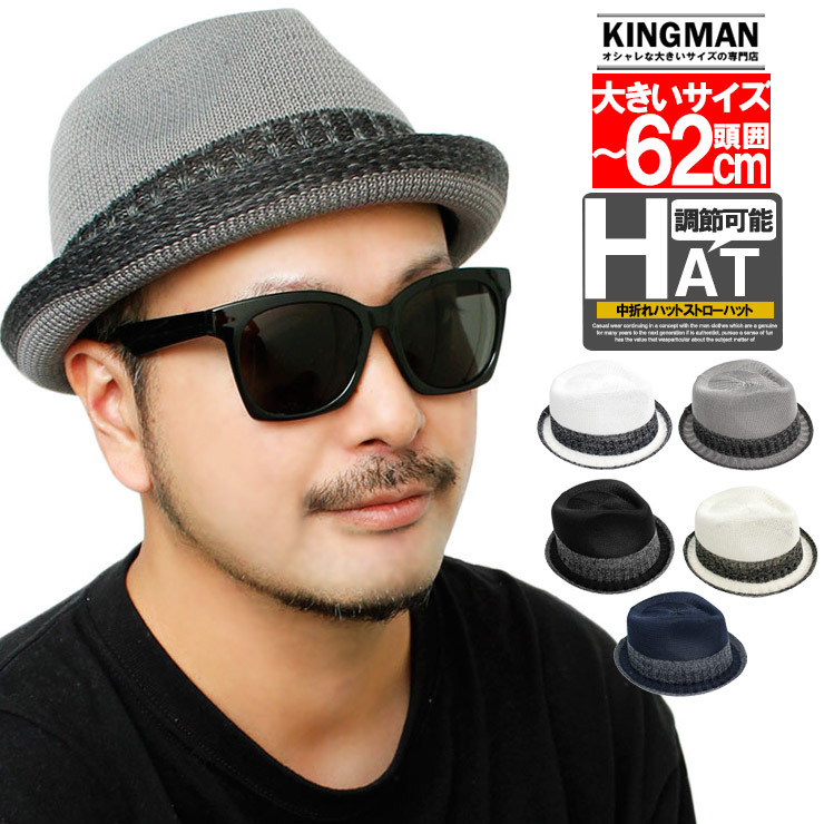 ストローハット メンズ 大きいサイズ 選べるサイズ 中折れハット マニッシュハット ハット 帽子 男女兼用 麦わら帽子 安い ワークマン プラス