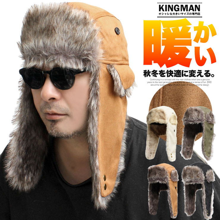 セール イヤー ファー ウール フェイクスウェード キャップ メンズ 耳当て付き サイズ調整可能 2WAY フライトキャップ 帽子 無地 パイロットキャップ