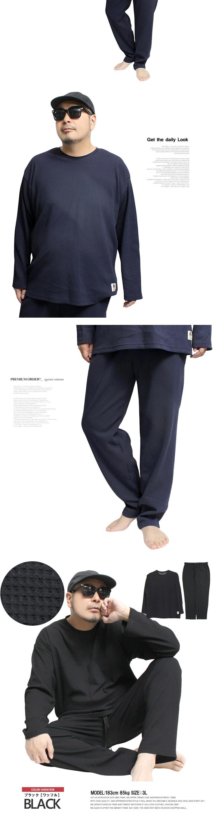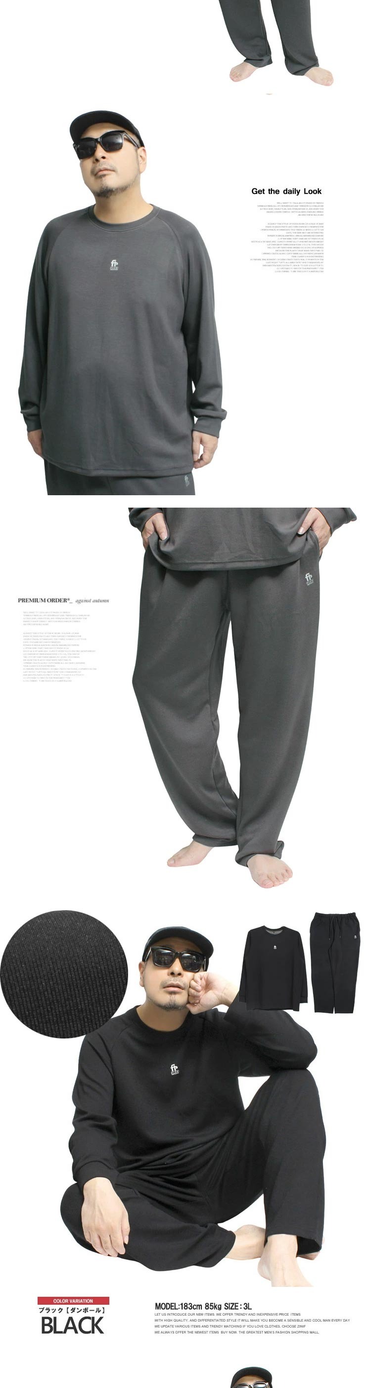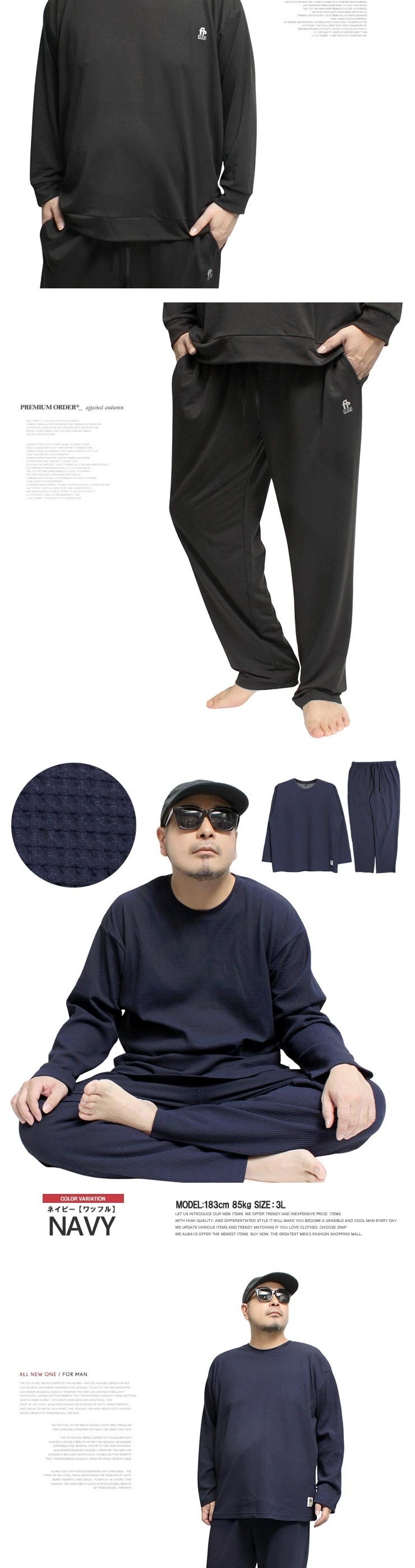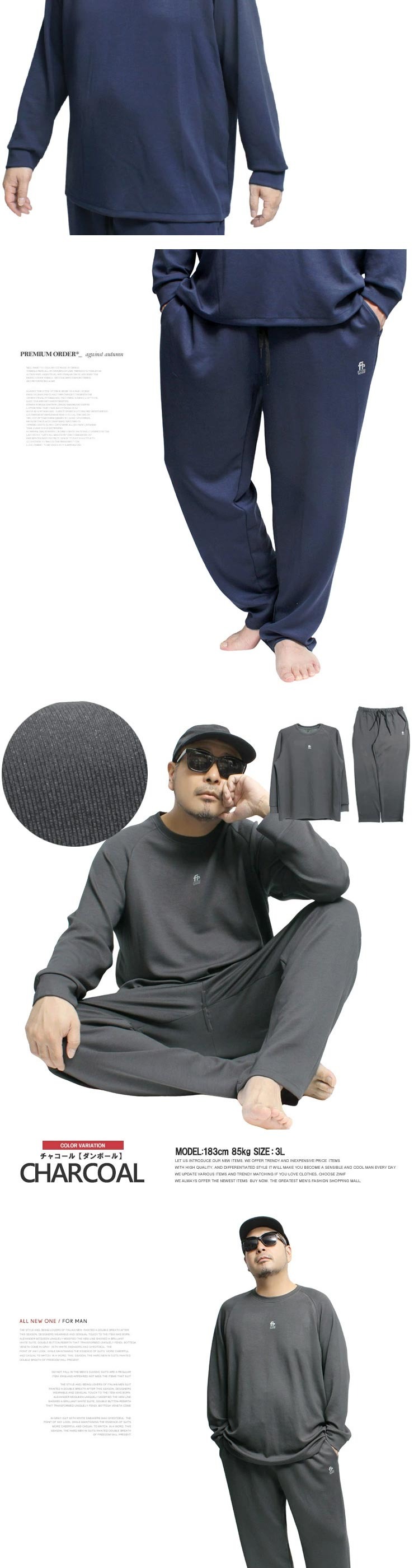 3Lサイズ:【トレーナー】着丈73cm 身幅63cm 裄丈88cm【パンツ】ウエスト82cm 股上28cm 股下76cm わたり39cm