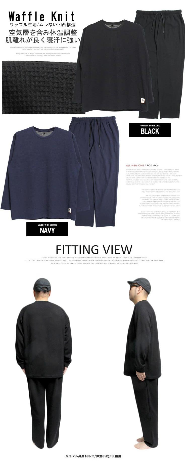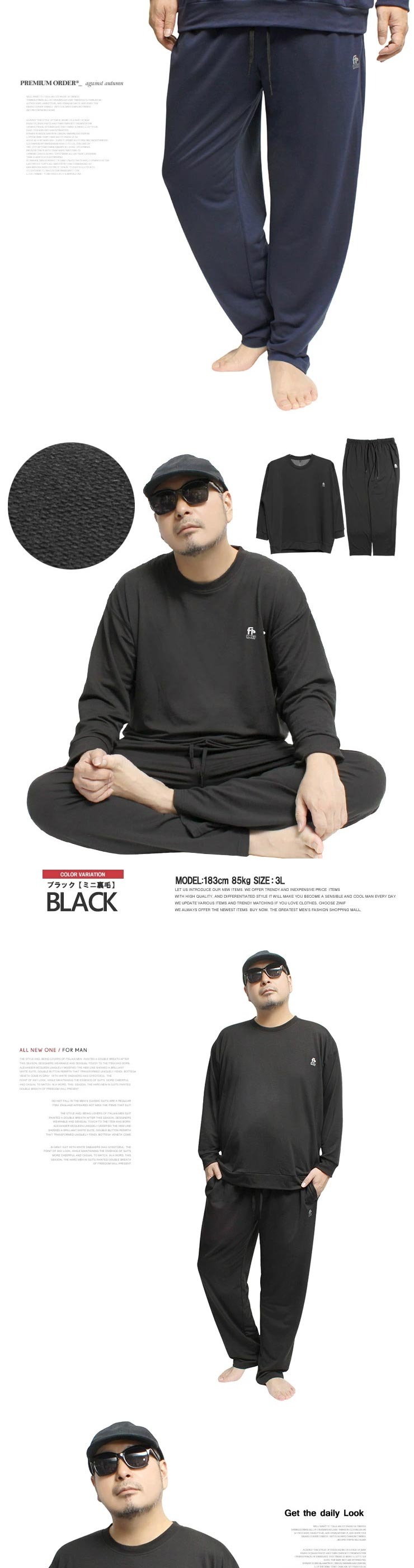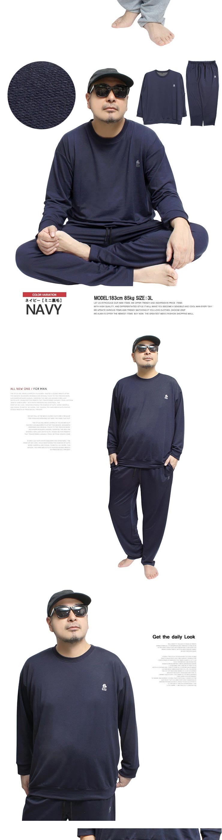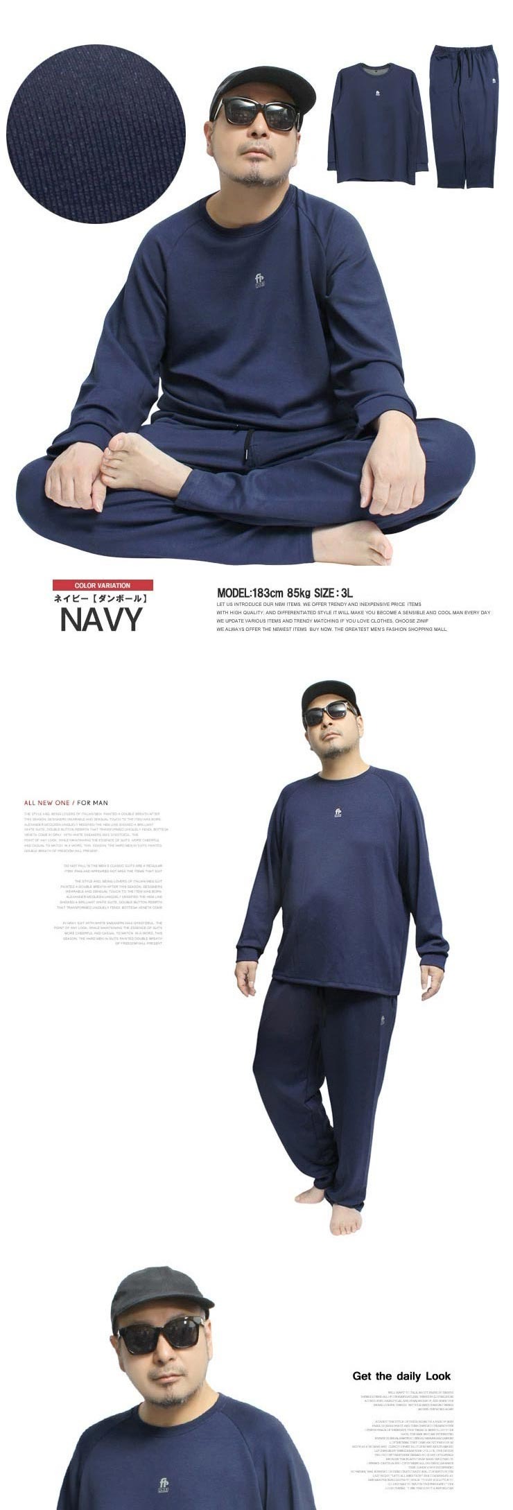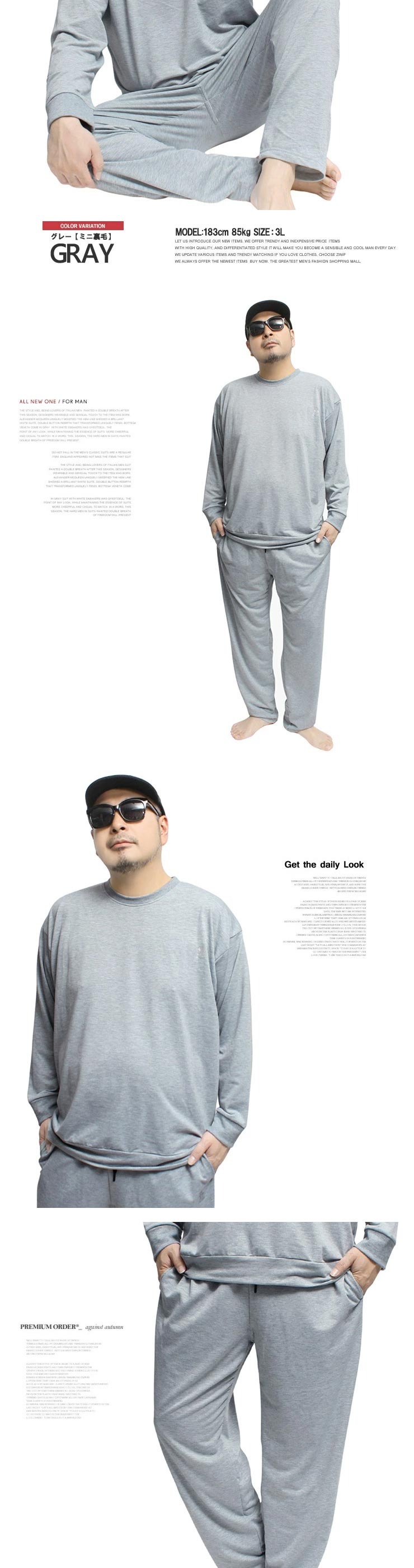 3Lサイズ:【トレーナー】着丈73cm 身幅63cm 裄丈88cm【パンツ】ウエスト82cm 股上28cm 股下76cm わたり39cm