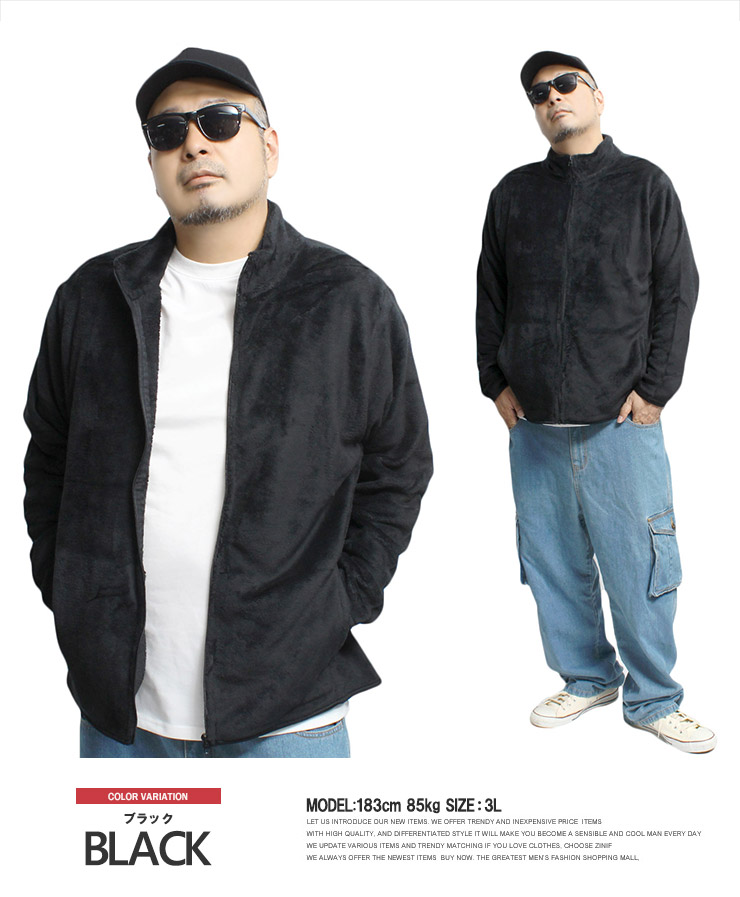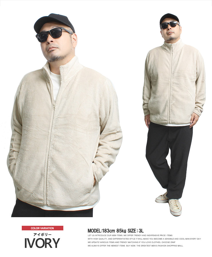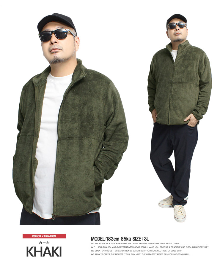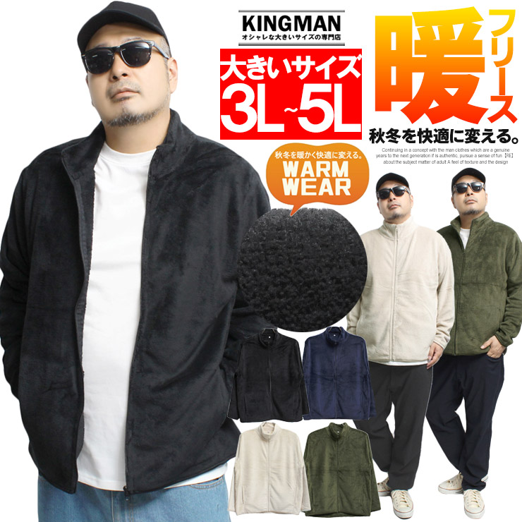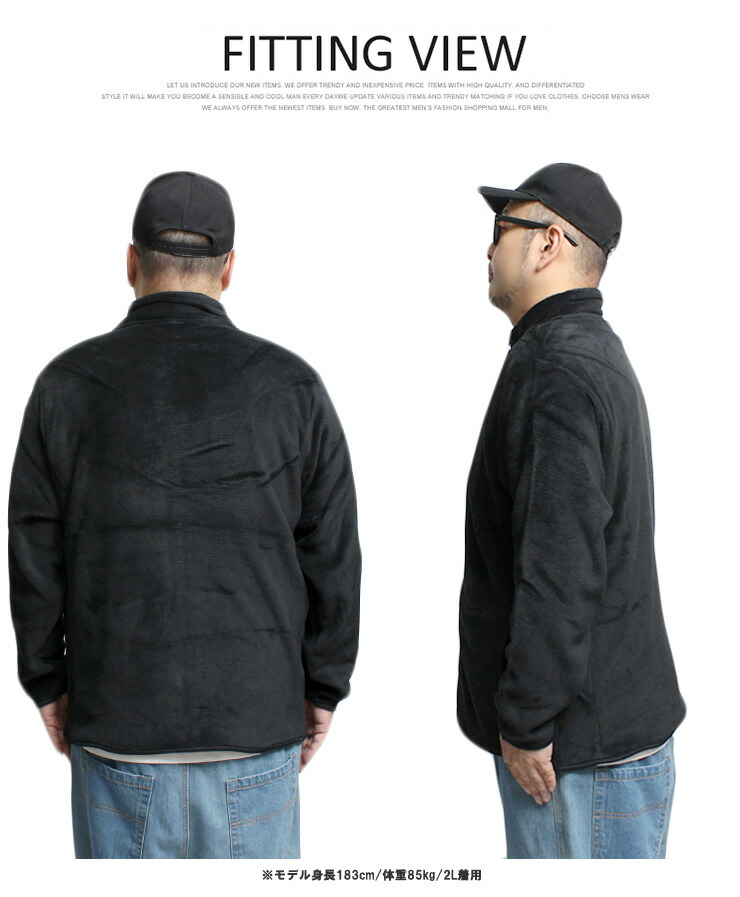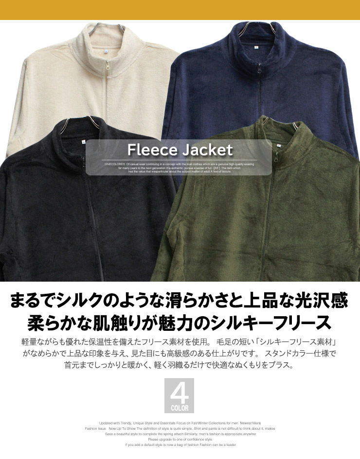フリース ジャケット メンズ 大きいサイズ シルキーフリース やわらか ジップアップ スタンド ブルゾン 2L 3L 4L 防寒 暖かい あったか 無地 保温 アウター