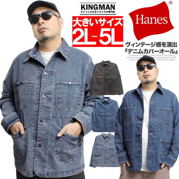 Hanes(ヘインズ) デニム カバーオール メンズ 大きいサイズ ストレッチ ヴィンテージ加工 ワークジャケット アウター デニムジャケット ブルゾン
