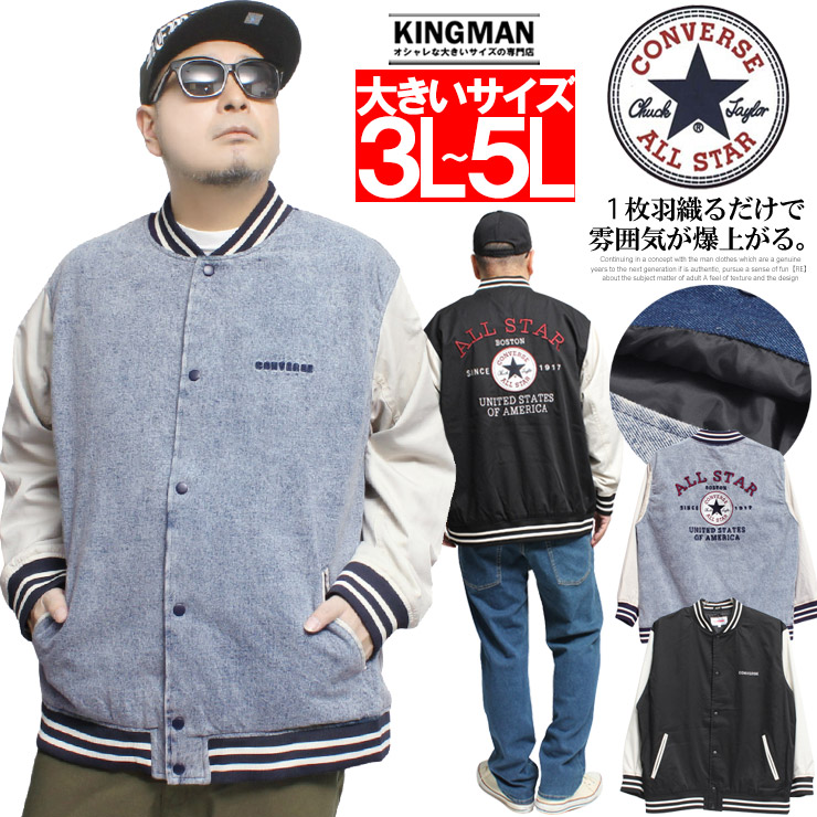 スタジャン メンズ ジャケット アウター ブルゾン コンバース CONVERSE オールスター ALLSTAR デニムジャケット デニムアウター ケミカルデニム ツイル 切り替え 袖配色 配色デザイン バックプリント バックロゴ ロゴデザイン ビッグロゴ カジュアル ストリート アメカジ 古着風 ヴィンテージ風 羽織り 春アウター 秋アウター ライトアウター デイリー 普段着 おしゃれ かっこいい 大人カジュアル メンズファッション 男性 服 紳士 トップス 羽織りもの コットン 綿 綿100 天然素材 肌触り やわらかい しっかり生地 リブ仕様 ラインリブ 襟リブ 袖リブ 裾リブ スナップボタン 前開き ポケット付き フロントポケット 便利 機能性 着回し コーデしやすい 重ね着 レイヤード 春コーデ 秋コーデ 冬コーデ カジュアルコーデ ストリートコーデ アメカジコーデ 大きいサイズ ビッグサイズ ゆったり シルエット 体型カバー ラク 楽な着心地 旅行 お出かけ 通学 通勤 休日スタイル ワンポイント ブランドロゴ ブランド メンズアウター メンズジャケット メンズブルゾン デニムスタジャン 切替スタジャン カレッジ風 スポーティー スポーツミックス ユニセックス ペアコーデ プレゼント ギフト 誕生日 父の日 M L LL 3L 4L 5L 対応 サイズ展開豊富