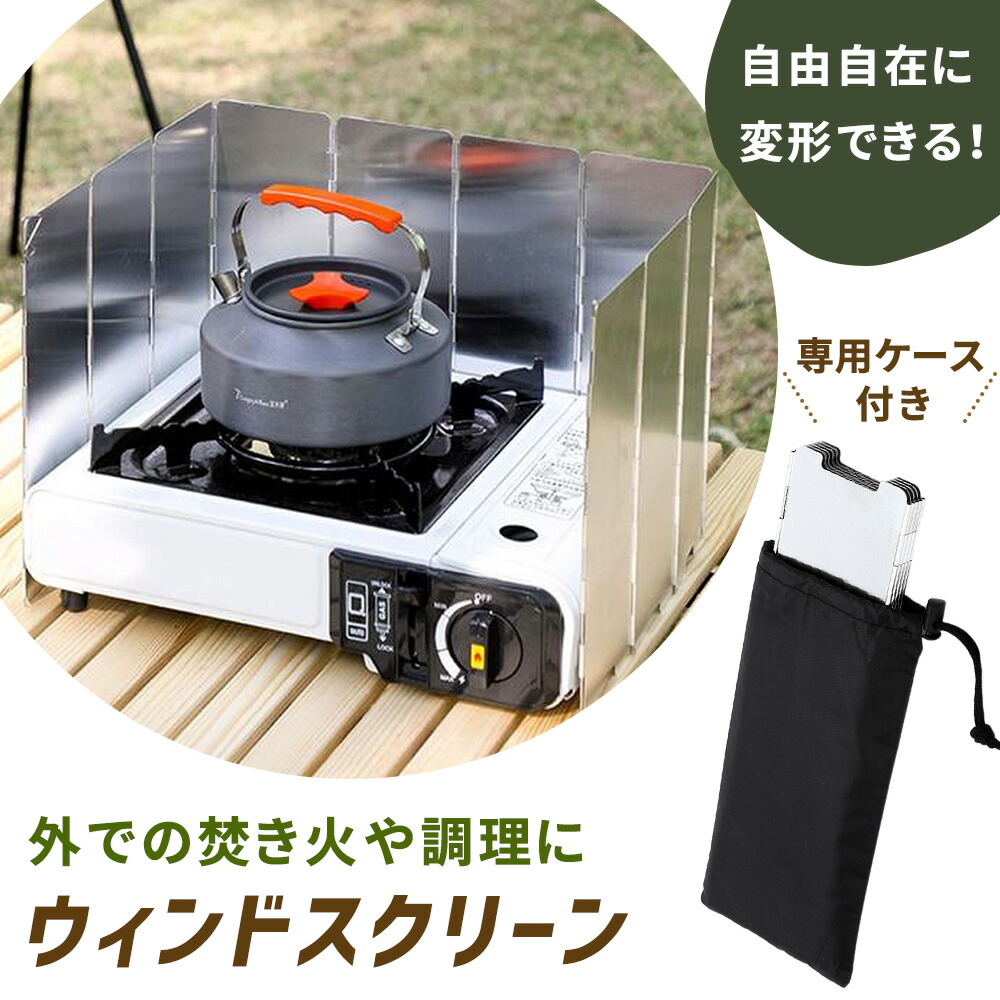 ウィンドスクリーン/キャンプ/風防/風除け/風よけ/風防板/アルミ/板/アウトドア/コンパクト/折りたたみ/10枚/変形/ペグ/固定/持ち運び/軽量/収納ケース/バーベキュー/調理/料理/お湯/沸かし/コンロ/バーナー/煮炊き/焚き火台/焚き火/連結可能