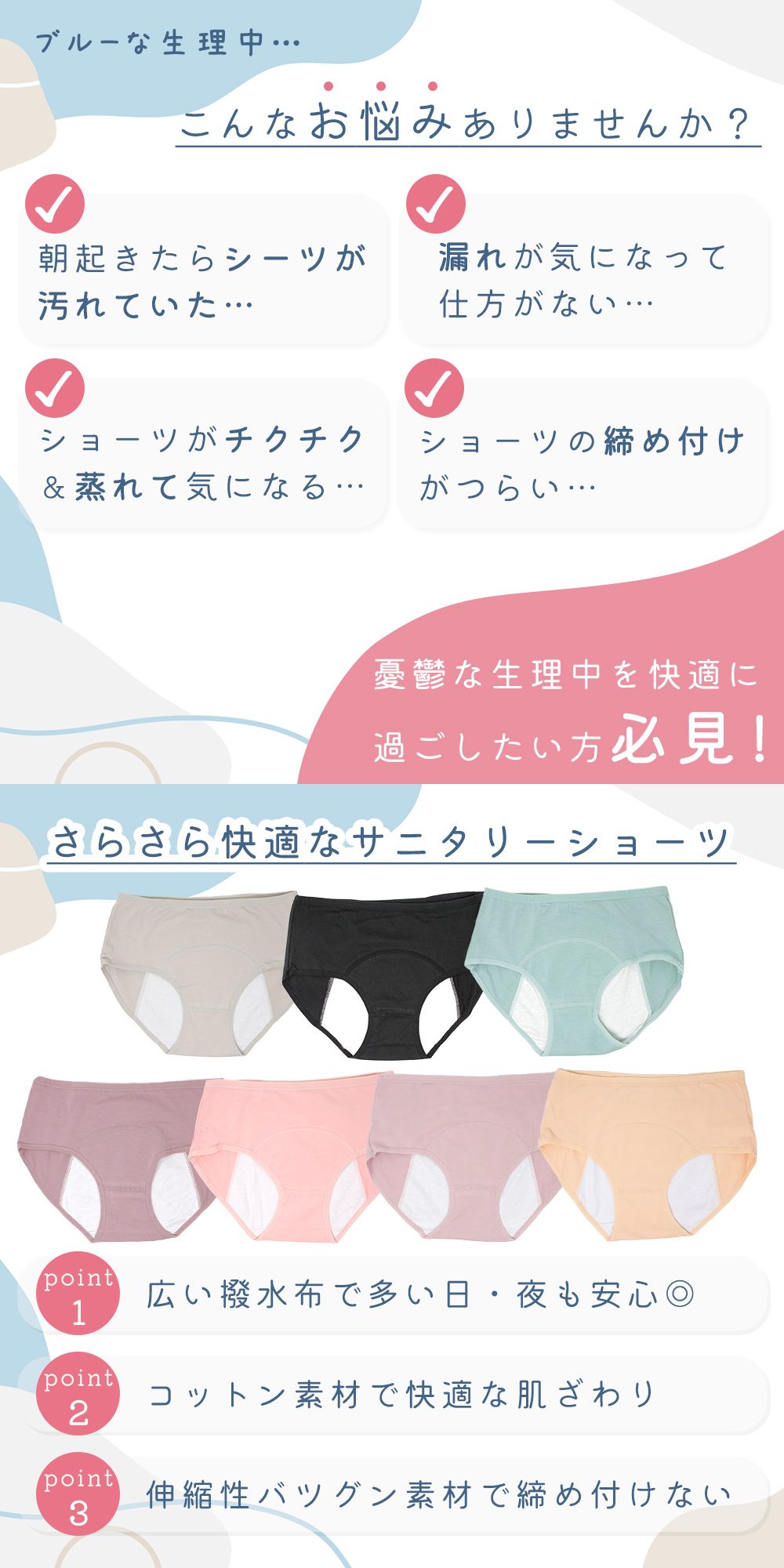 サニタリーショーツ/4枚セット/まとめ買い/洗い替え/レディース/コットン/綿100%/伸縮性/撥水/通気性/下着/インナー/パンティ/漏れ防止/スタンダード/快適/洗い替え/生理用パンツ/女性/フィット感/かわいい/おしゃれ/無地/ノーマル/さらさら/締め付けない/ストレスフリー/デイリー/普段使い/スダンダードショーツ/ナイトショーツ/生理用下着/プレゼント/贈り物/コットンショーツ/ボックスショーツ/
