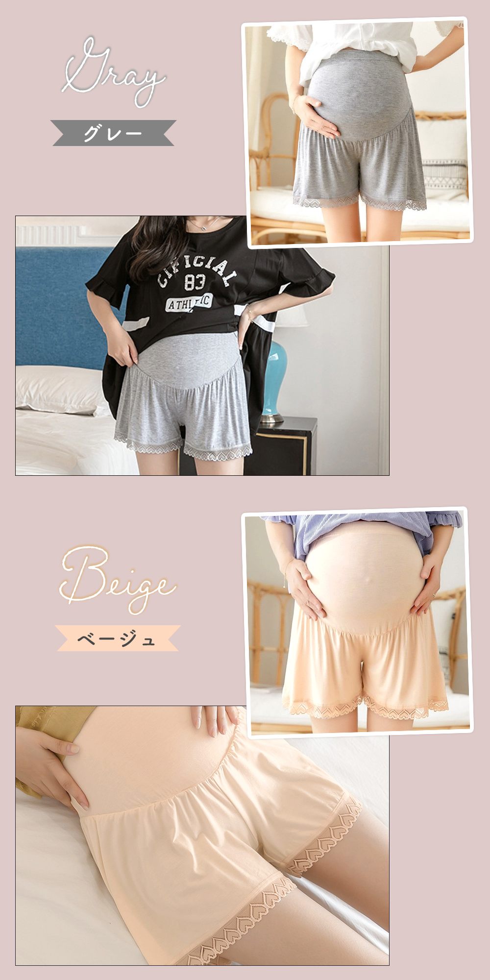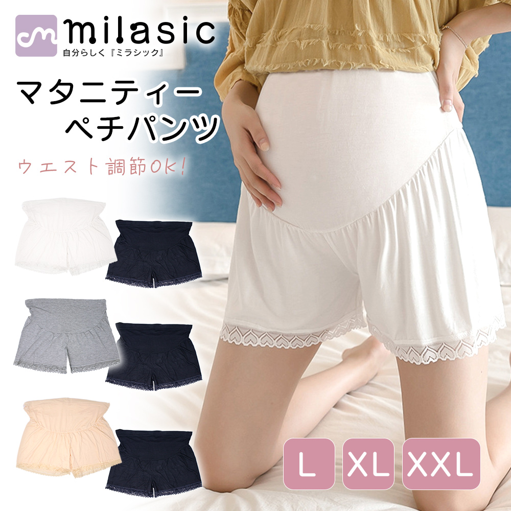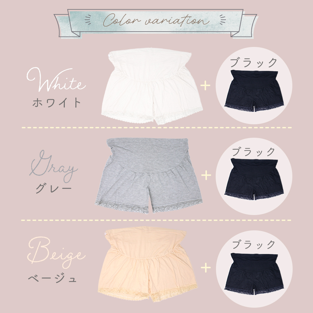 マタニティ/ペチパンツ/ペチコート/1+1枚セット/インナー/ルームウェア/部屋着/マタニティウェア/ショートパンツ/インナーパンツ/スパッツ/肌着/ウエスト調節/アジャスター/伸縮性/ゆったり/レース/妊婦/妊娠中/産前/産後/TN-PPAT/
