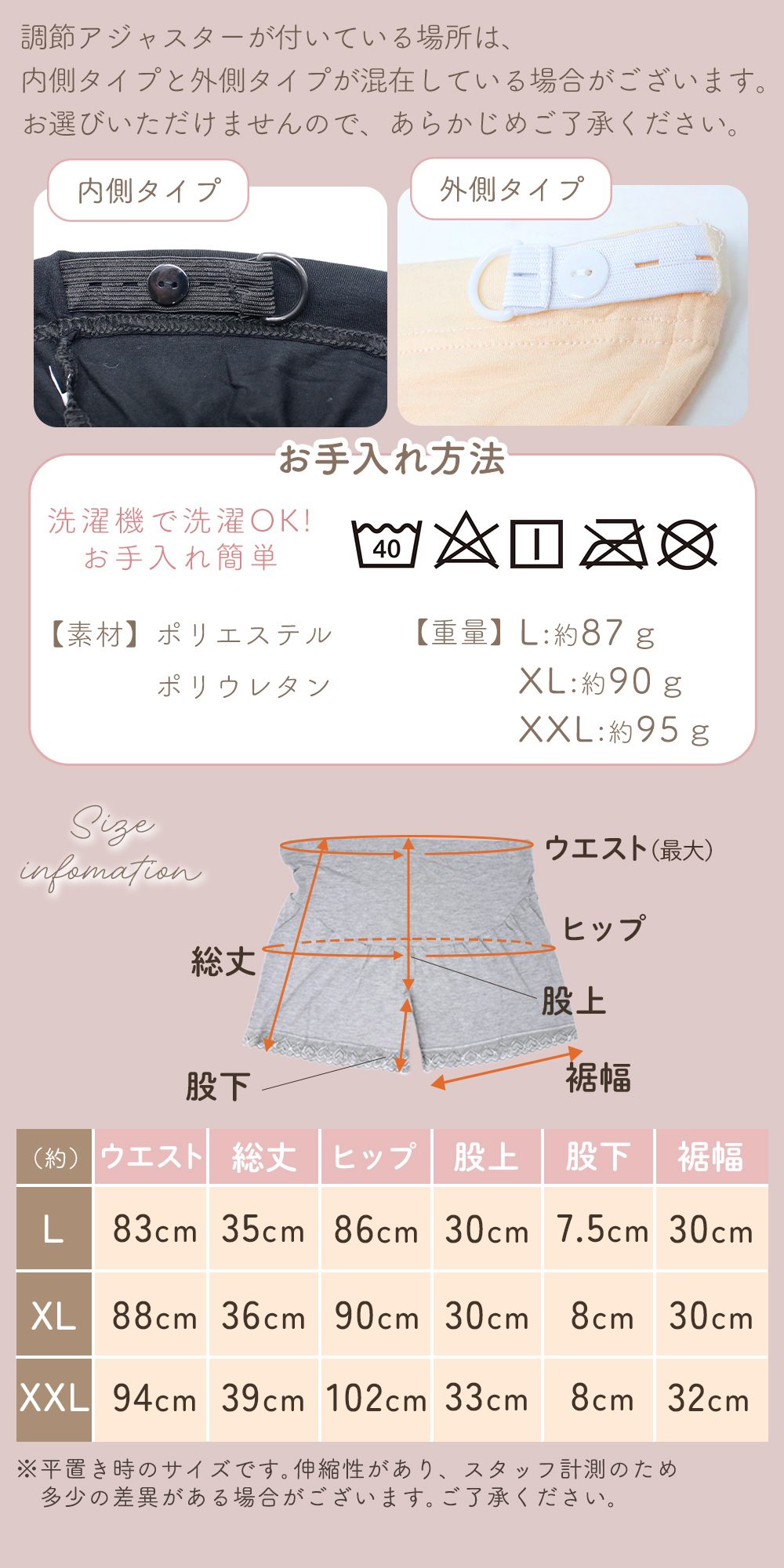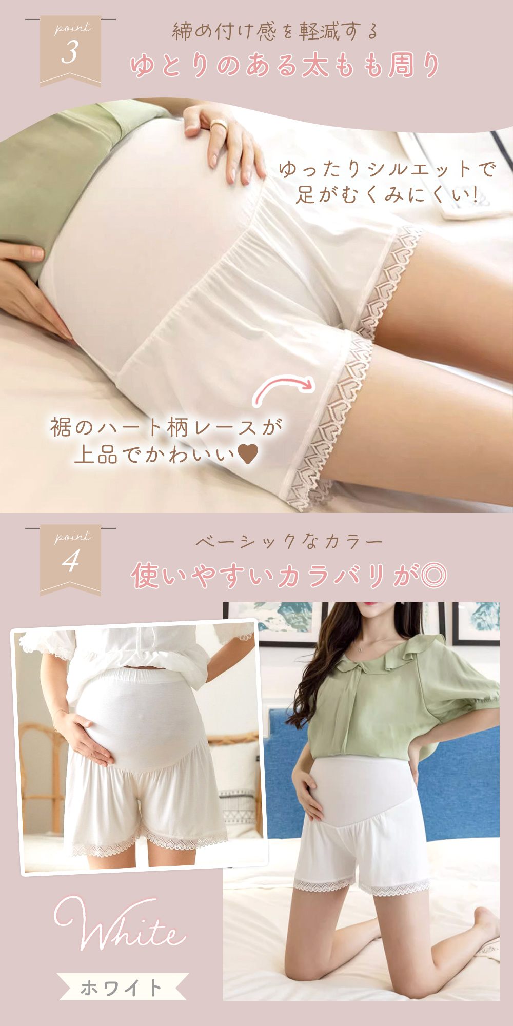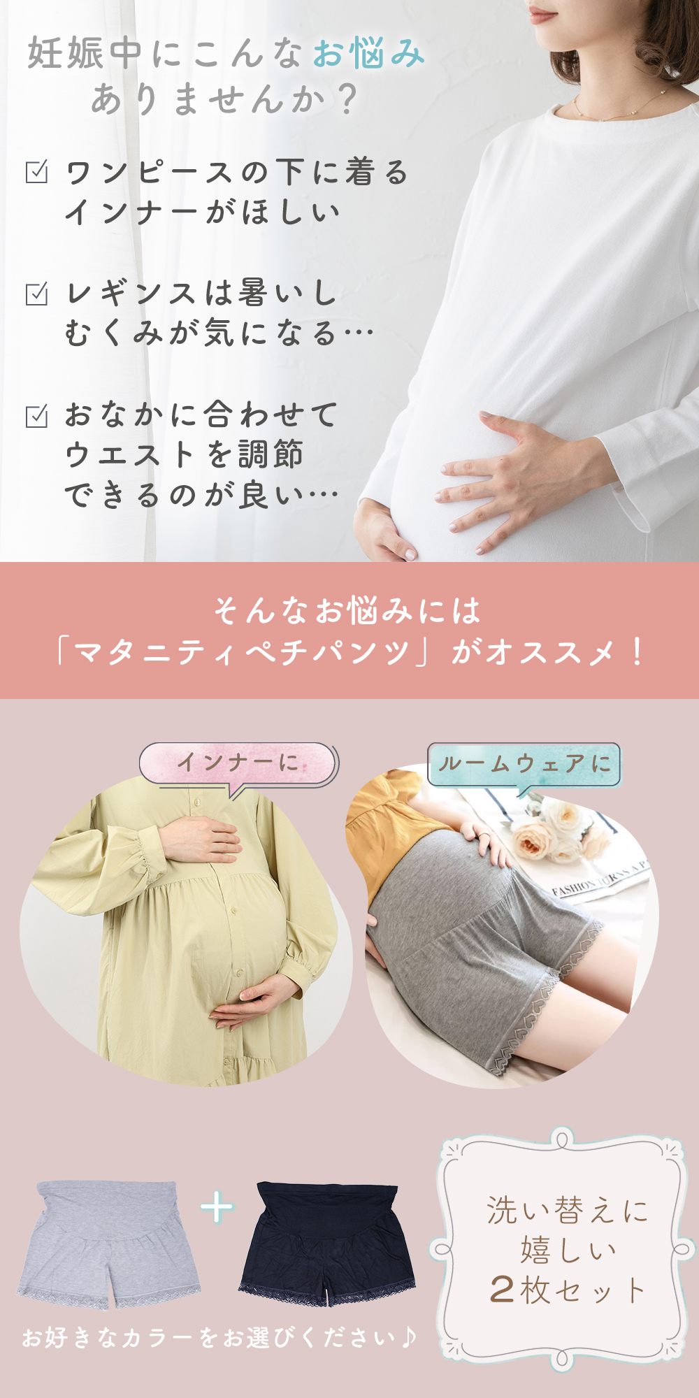 マタニティ/ペチパンツ/ペチコート/1+1枚セット/インナー/ルームウェア/部屋着/マタニティウェア/ショートパンツ/インナーパンツ/スパッツ/肌着/ウエスト調節/アジャスター/伸縮性/ゆったり/レース/妊婦/妊娠中/産前/産後/TN-PPAT/