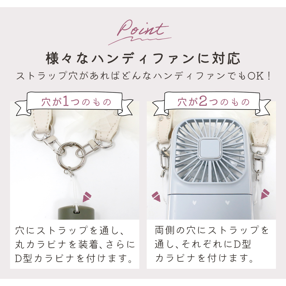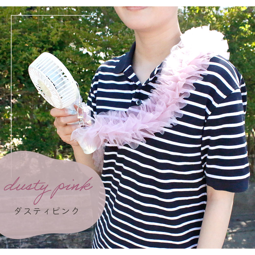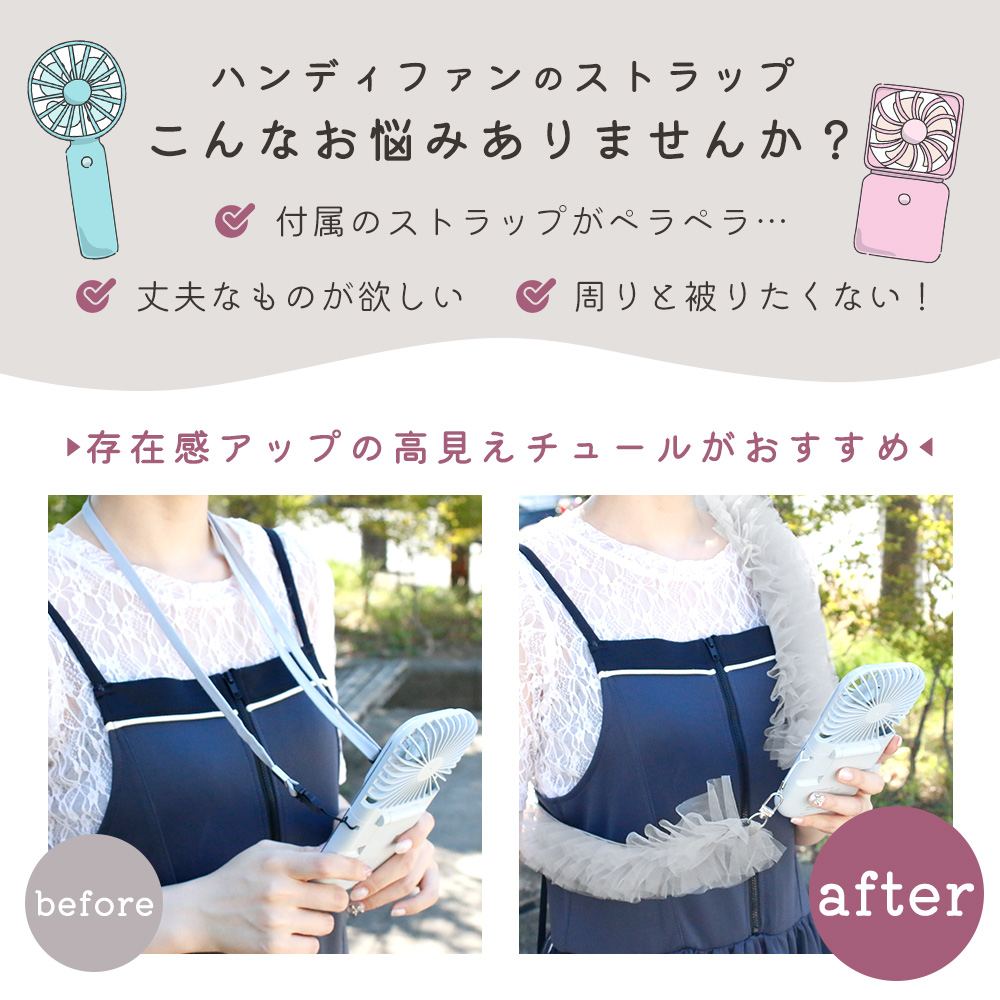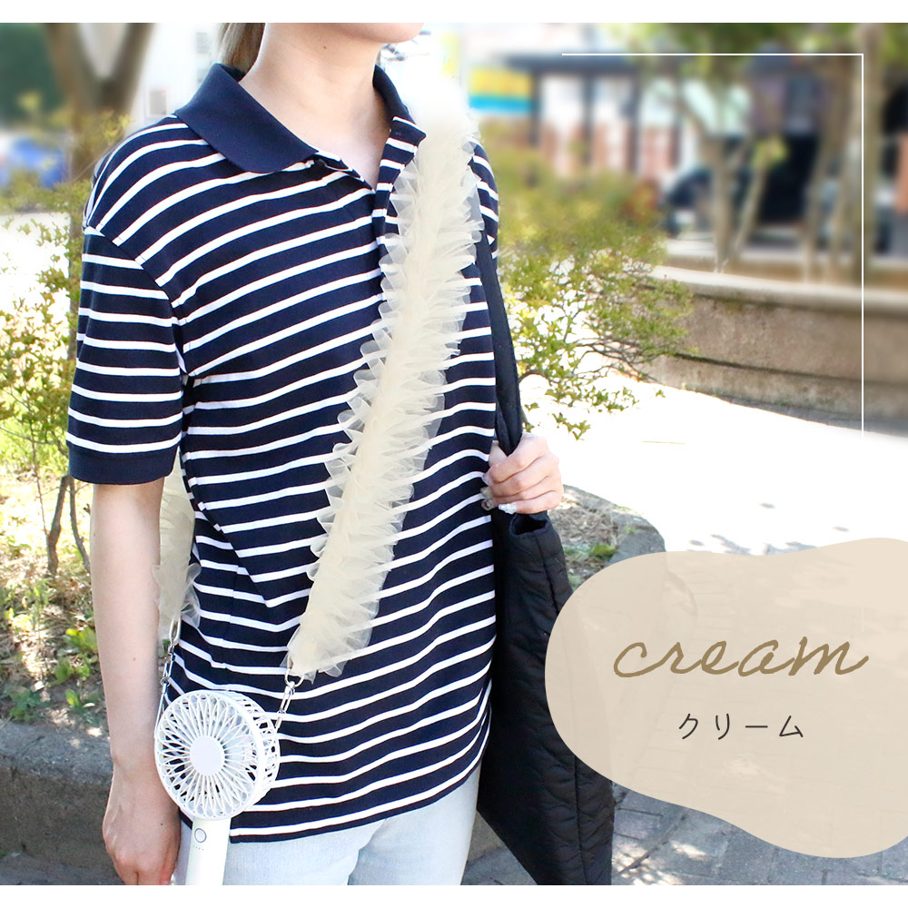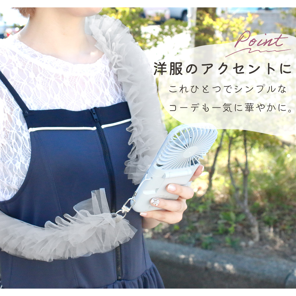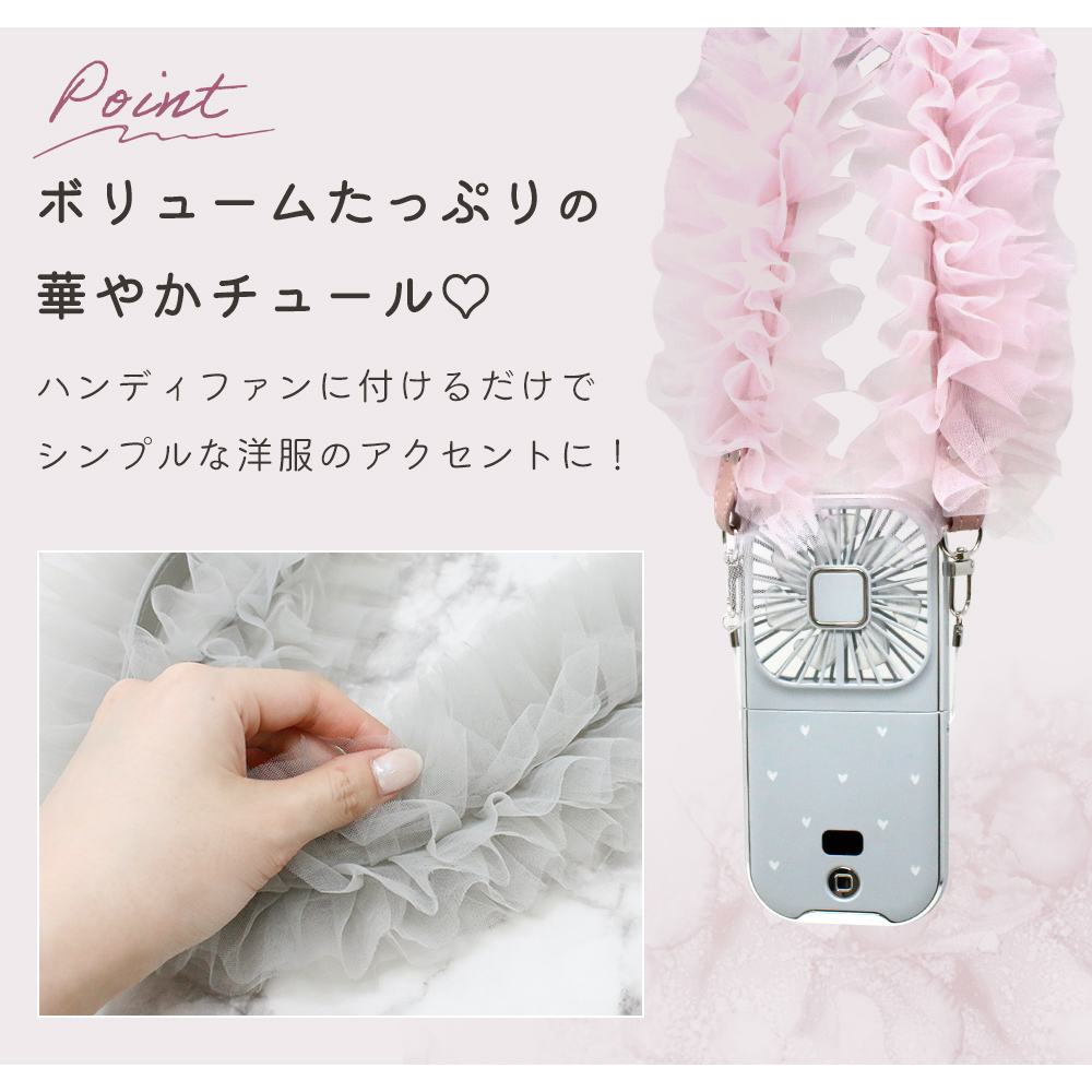 チュールストラップ ハンディファン 扇風機 肩掛け フリル スマホストラップショルダー 小型 斜め掛け スマートフォン ストラップホール ポイント消化