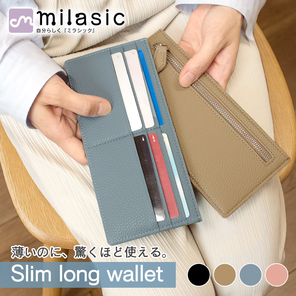 ・驚くほどスリムなのに、抜群の収納力を誇る長財布薄型財布をお探しの方にぴったりの、厚さ約0.5cmの極薄ロングウォレット。