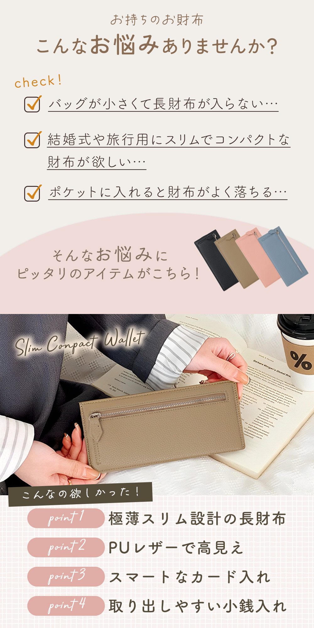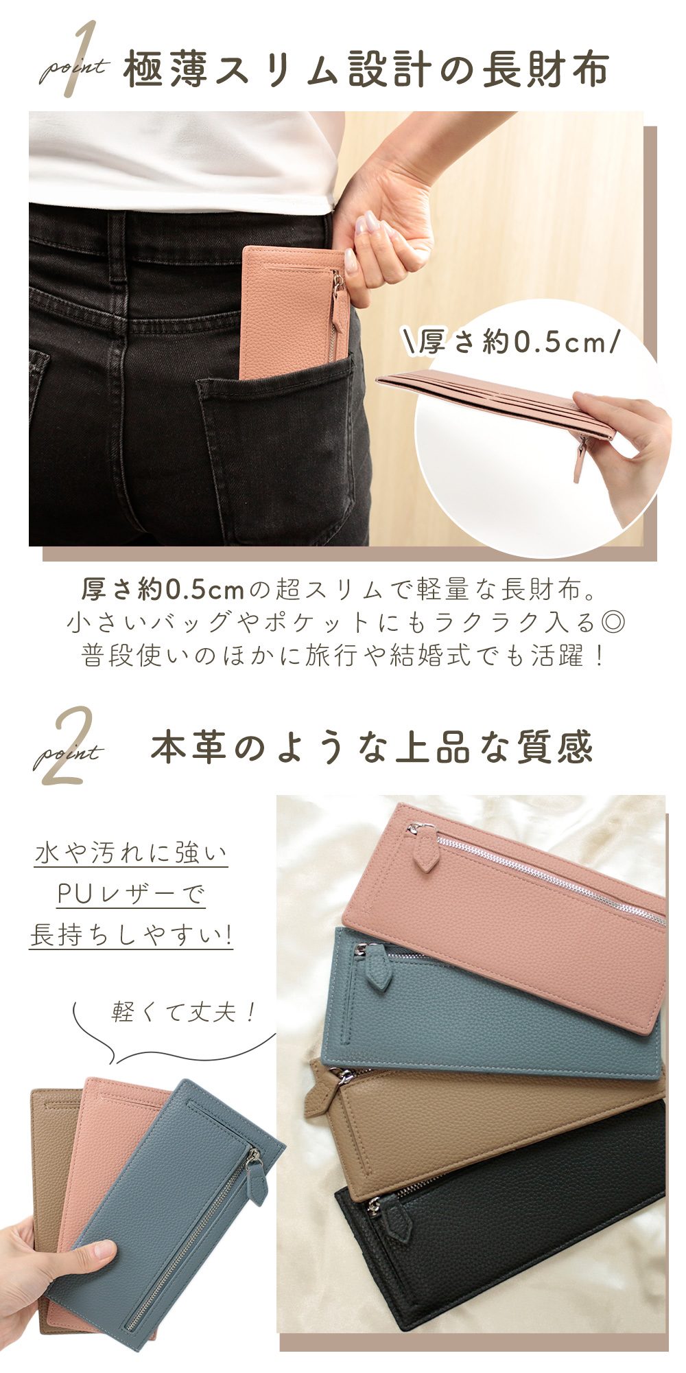 小さいバッグやポケットにもすっきり収まり、結婚式や旅行用のサブウォレットとしても便利です。