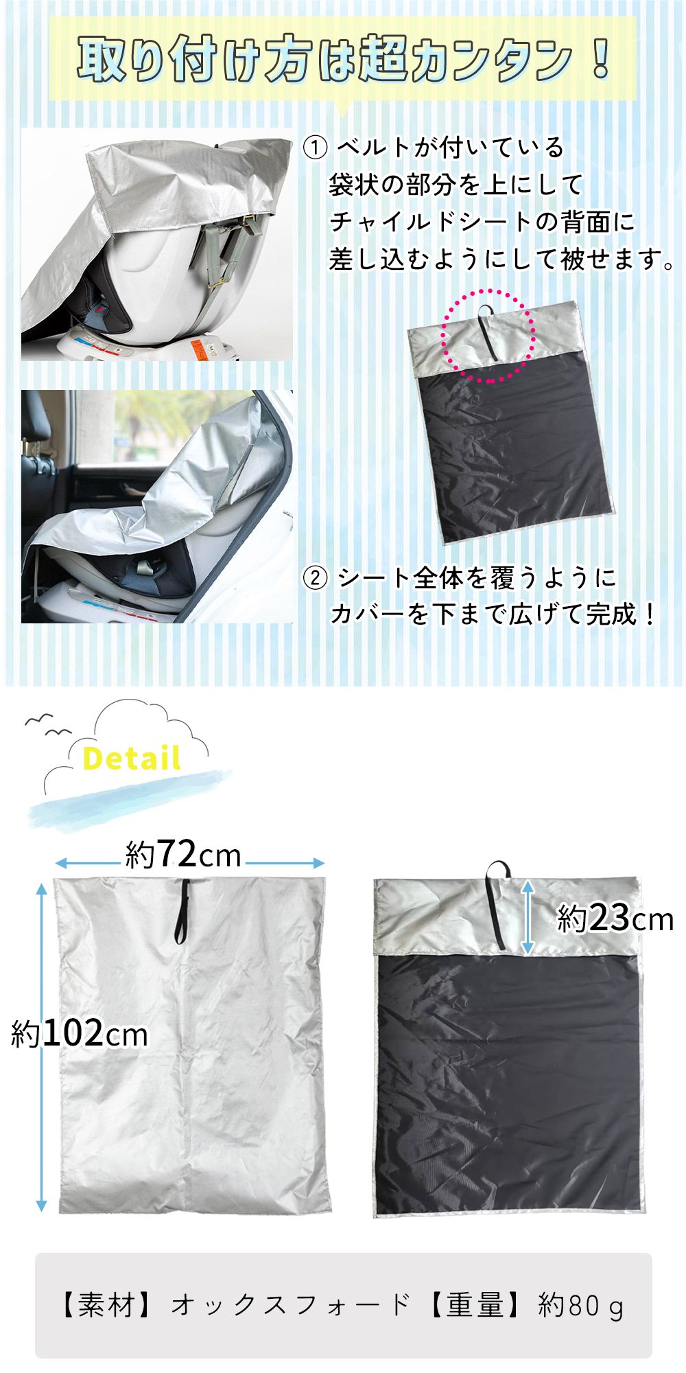 ・チャイルドシートを熱と汚れから守る便利カバー夏の強い日差しや高温が気になる季節、車内のチャイルドシートは想像以上に熱くなってしまうことも。