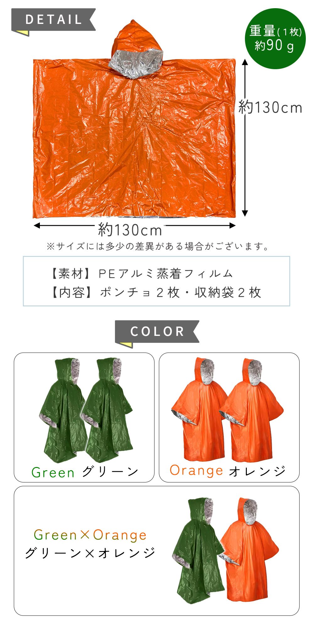 ・防災アルミポンチョ 2枚セットで家族の備えに防災グッズ・非常用として、災害や豪雨、台風、地震などの避難時に役立つポンチョ。2枚セットなので家族で分け合えて、いざという時の安心を増やします。