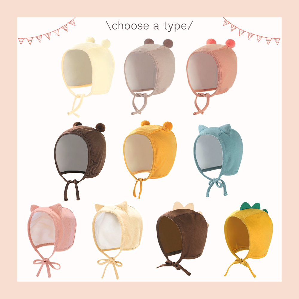 ベビー帽子/ベビーボンネット/赤ちゃん帽子/耳付き/帽子/かわいい/ヘアーアクセサリー/ベビー帽子/ハット/ボンボン/新生児/幼児/赤ちゃん/男の子/女の子/おでかけ/おしゃれ/シンプル/ベビー用品/かぶりやすい/クマ/ネコ/キョウリュウ/春/秋/冬/コットン/ふんわり生地/保温/45〜50?/アニマル/ホワイト/グレージュ/ピンク/コーヒー/イエロー/ブルー/ベージュ/優しい肌触り/ヘアバンド