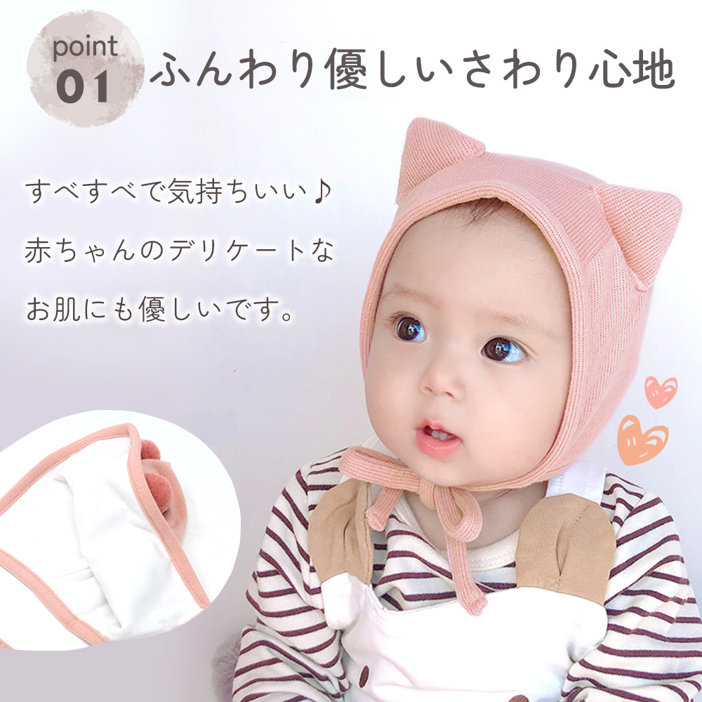 赤ちゃん帽子 ベビー帽子 ベビーボンネット 耳付き 帽子 かわいい ヘアーアクセサリー ベビー帽子 ハット ボンボン 新生児 幼児 赤ちゃん ポイント消化