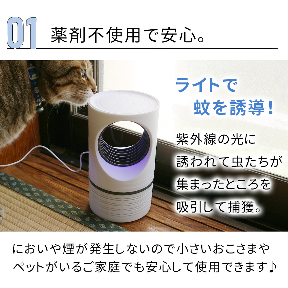 ■備考蚊取り器/静音/虫除け/UV光源/吸引式捕虫器/殺虫ライト/蚊取り/UV光源吸引式/薬剤/殺虫剤/不要/安全/赤ちゃん/ペット/省エネ/エコ/屋内/玄関/寝室/台所/リビング/ベランダ/キャンプ/テント/USB/USB給電/捕虫器/殺虫器/蚊取り線香/卓上/夏/蚊/犬/猫/イヌ/ネコ/動物/