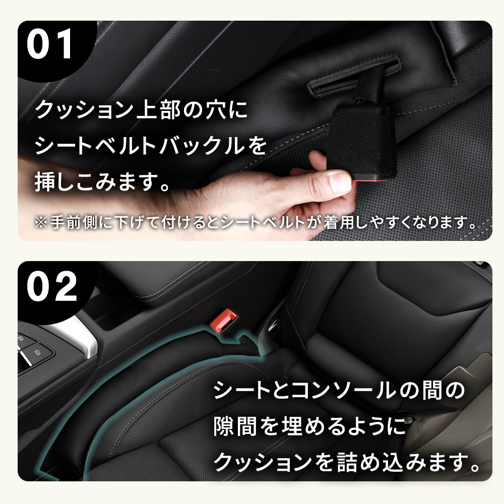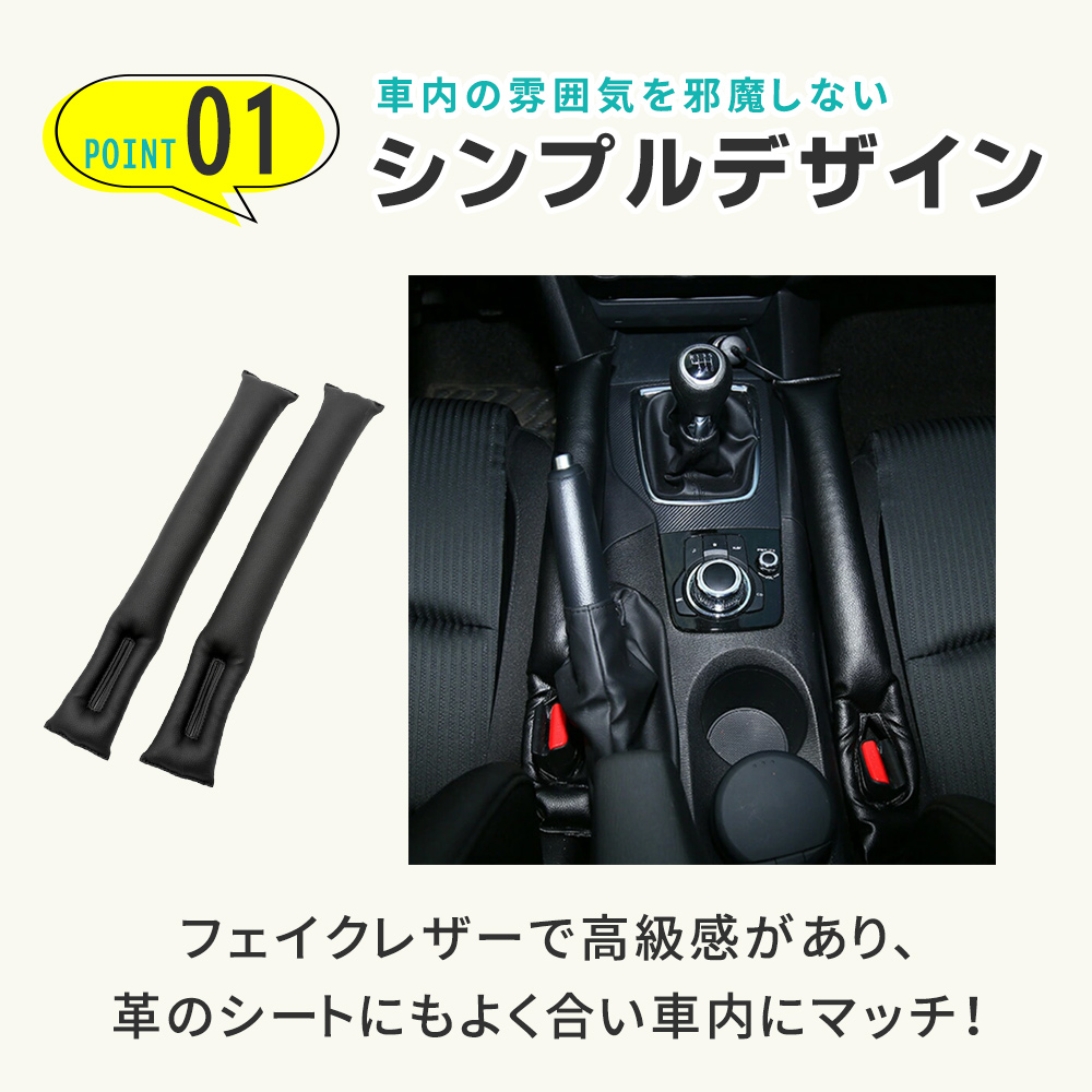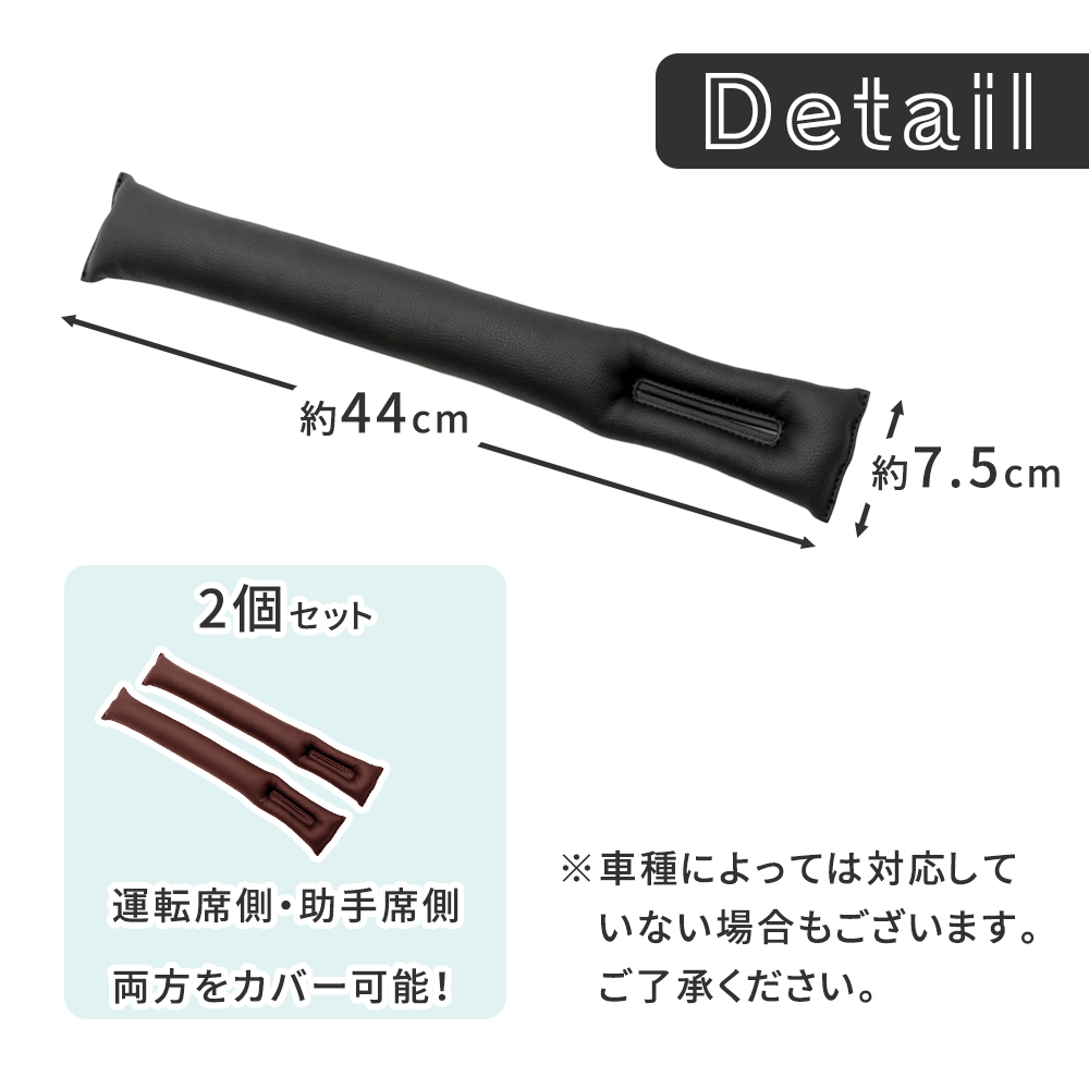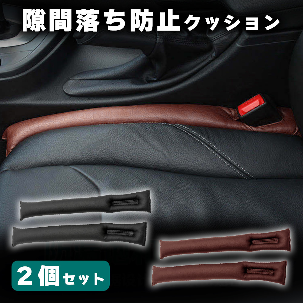 隙間落ち防止/クッション/2個セット/フェイクレザー/隙間埋めクッション/すき間落下防止クッション/隙間/座席/車/小物/シート/カーアクセサリー/小物入れ/隙間収納/収納付き隙間クッション/小物収納/ブラック/ブラウン/黒/茶色