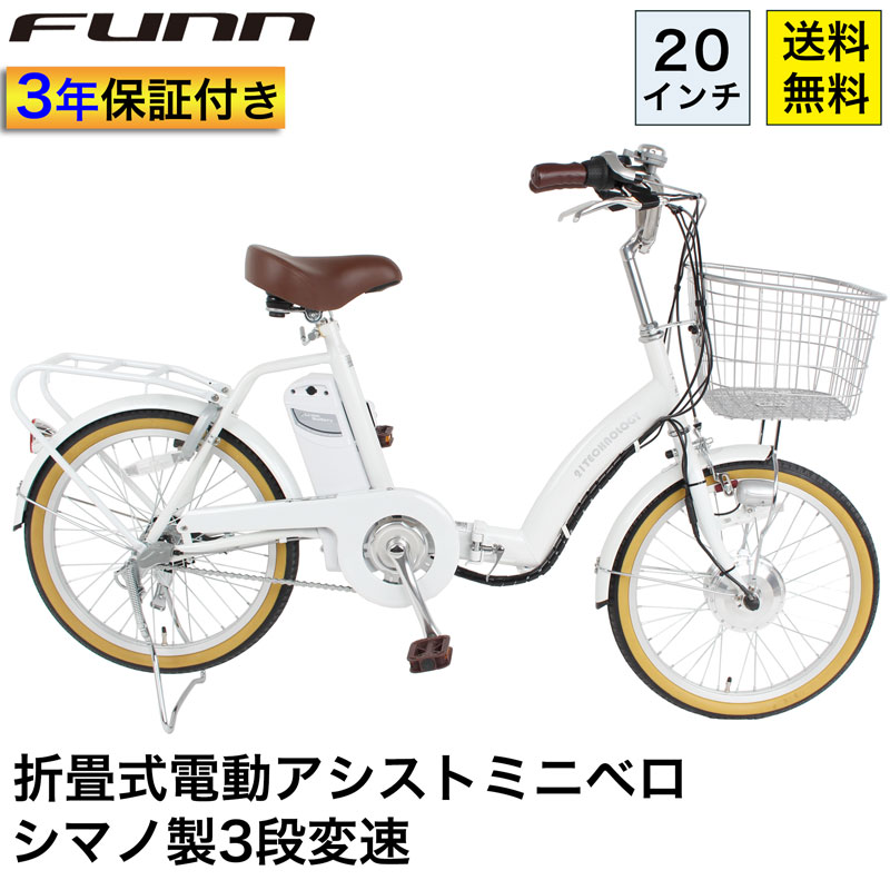 3年間の無料補償付 電動自転車 電動アシスト自転車 20インチ シマノ製3段変速搭載 折りたたみ自転車 自転車 アシスト自転車 型式認定取得 送料無料 DA203