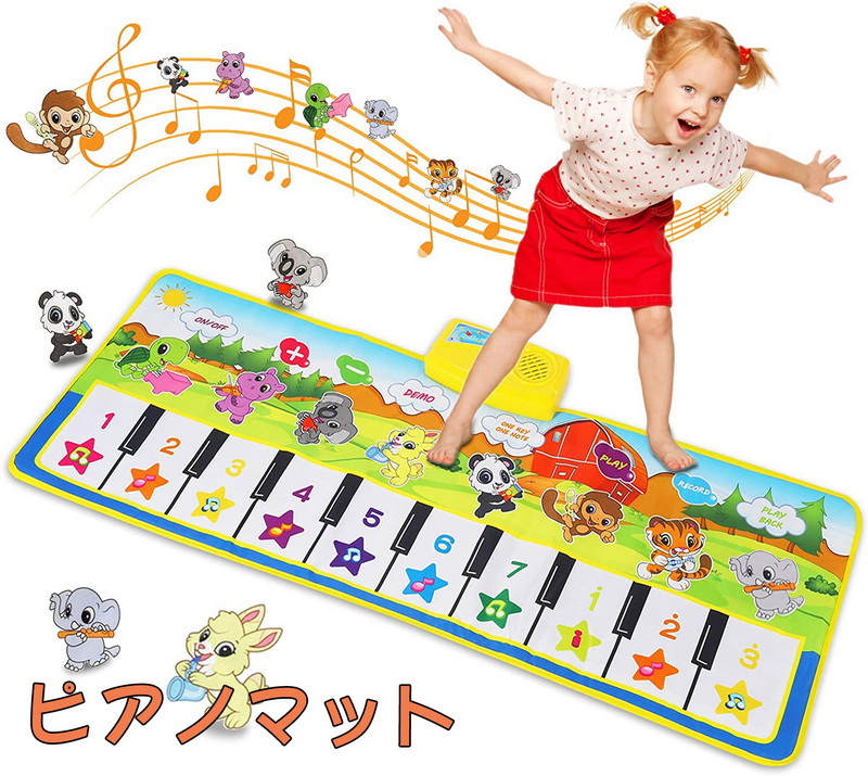 ピアノマット おもちゃ ピアノ 10鍵盤 10曲デモ 8種類楽器音 ピアノ おもちゃ 鍵盤 マット ミュージックマット 知育玩具 100 x 36 cm 音楽おもちゃ