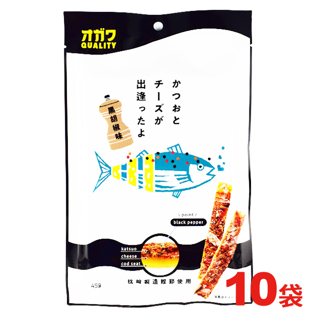 オガワ食品 かつおとチーズが出逢ったよ 黒胡椒 45g×10袋 おつまみ 珍味※北海道・東北地区は、別途送料1000円が発生します。