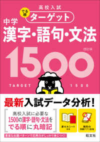 国語学習の基本である漢字・語句・文法の問題は高校入試に必ず出題されています。本書は、過去の入試問題を分析し、頻繁に出題される漢字・語句・文法を「でる順」に配列しました。四訂版では、掲載題数を1500題以上と大幅に増やしています。赤セルシートを活用して、繰り返し学習しましょう。そのほか、三択問題が解ける公式無料アプリ「(中学生向け)高校入試ターゲット」(iOS/Android)もおススメです!