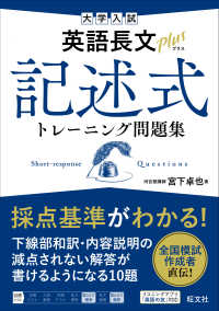 予備校のテキスト作成にも携わる著者が大学入試過去問から厳選した,英語長文問題を10題収録。設問はほぼ「下線部和訳問題」,「内容説明問題」のみに絞られているため,特化した練習ができます。