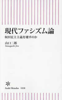 ファシズムへの底流にある「閉塞感」の正体を解く。崩壊の危機に瀕し、ファシズムへ接近する戦後の民主政治。対立と分断、深刻な格差、デマと差別、歴史修正、ポピュリズム…現代の政治状況のどこが過去のファシズムと重なり、異なるのか。1990年代以降のグローバル化や情報革命がもたらした亀裂とは。第2次世界大戦後に形成された民主主義の前提を振り返るとともに、現代版のファシズムに対抗する術を徹底検証する。