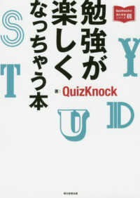勉強が嫌いなあなたに読んで欲しい!これまでの「勉強」へのイメージを一新させて、背中を押してくれる一冊。もっと気楽で、楽しくて、自分がやりたいと思える「勉強」を深めるための入門書。東大クイズ王・伊沢拓司が中心となって運営する、エンタメと知を融合させたメディア「QuizKnock」。彼らが、中高生から大人まですべての「学び続けたい人」に向けて教養本を手がけました。「楽しいから始まる学び」をコンセプトに全国の教育機関を中心に講演を行うなど、さまざまな活動を展開する彼らが、そもそもの「勉強」や「学び」についてやさしくひも解いていきます。勉強は決して辛いもの、苦しいもの、大変なもの、自分以外の誰かのためにやらないといけないものだけではありません。本書では、「勉強」を徹底的にポジティブなものとして描き出し、もっと気楽で、楽しくて、「自分のためにやりたいと思えるもの」にするための考え方を基礎から提案していきます。いつの間にか、自然と「勉強が好きなっちゃう」ためのQuizKnockならではの「視座」や「思考法」をまとめました。子供をもつ親御さんにもぜひ手に取っていただきたい一冊です。QuizKnockメンバーの考え方や経験に触れたり、吸収することでこれまでの「勉強の見方」や景色が変わってくるはずです。「好き」を深めて広げれば、どんどん世界が広がり、つながっていく感覚を味わうことができるでしょう。その他、QuizKnock自作のワークシートやクイズ、QuizKnockライター書き下ろしのコラム、Q&Aコーナーなど「日常が楽しくなっちゃう」仕掛けやヒントが盛りだくさん。