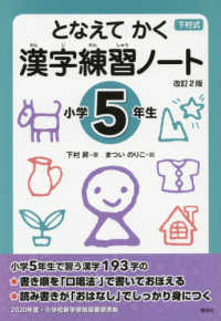 小学5年生で習う漢字193字を「口唱法?」で書きとり、「おはなし」で読み書き練習。2020年度新学習指導要領準拠の改訂2版。40年間にわたり読みつがれている漢字学習のベストセラー・下村式「となえて おぼえる 漢字の本」のドリル版。2020年度より実施の小学校新学習指導要領準拠の改訂2版。小学5年生で習う漢字193字を練習。書きかた練習では、書き順を「口唱法?」でとなえながら書くことでしっかり習得。なりたちでは、絵本作家まついのりこさんの絵とともに漢字のおおもとの意味や組み立てを理解。読みかたと書きかたの問題では、一つの「おはなし」になっている読み1問・書き2問の文章のなかで、漢字の生きた使いかたを学習。