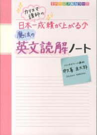 当社人気シリーズ『カリスマ講師の 日本一成績が上がる魔法の○○ノート』の続編。見開き2ページ×全75「Lecture」にて、英文読解問題の入試頻出パターンを完全網羅。手書き部分は教え子が作成。