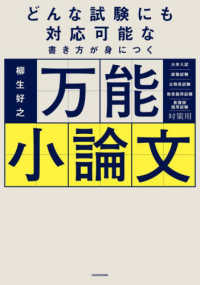 アイディアが何も思い浮かばない…、トピックの背景知識を何も知らない…、原稿用紙のマス目が最後まで埋まらない…。そんな初心者、大歓迎!あらゆる小論文に通じる「何を書くべきか」「どう書くべきか」を、人気指導者がシステマティックに解説。いきなり高度なことを求めず、最初は基本から教え、最終的に合格レベルまで到達させる、小論文対策の入門書。