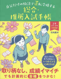 総合・推薦入試に合格するために、いつ何をやればいいのかがわかる手帳。春から秋・冬までの書きこみ式マンスリー、ウィークリースケジュールのほか、小論文、志望理由書、面接、そのほかやっておきたいことなどを紹介。