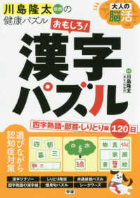 東北大学・川島隆太教授監修。楽しい漢字遊びで認知症対策。四字熟語・部首・しりとりのテーマのおもしろパズルを満載。東北大学・川島隆太教授監修。楽しい漢字遊びで認知症対策。四字熟語・部首・しりとりのテーマのおもしろパズルを満載。四字熟語ジグソー、四字熟語ナンバーワーズ、部首組み立てパズル、しりとり迷路など120日分掲載。