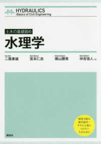 数式暗記の科目を「わかる科目」に。流れと力の関係を可視化するカラー図版を多数掲載。豊富な演習問題で試験対策もバッチリ。数式の暗記に陥りがちな水理学を「わかる科目」に。学習内容を実感できるような身の回りの事例を取り上げた。 流れと力の関係を可視化するカラー図版や実際の写真を多数掲載。 例題や演習問題が豊富なので知識が確実に定着。