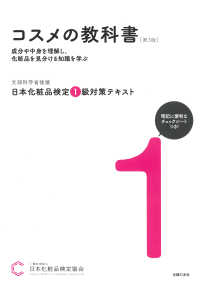 シリーズ累計50万部突破の美容検定本で1番読まれているコスメの教科書が、より楽しく学べるようにリニューアルしました!化粧品開発者による化粧品の基礎知識、肌の仕組み、薬機法まで、化粧品にまつわる正しい知識を解説いたします。本書は文部科学省後援(1級・2級)の美容業界、学校法人などで続々と導入されている注目の資格、累計150万人*が受験した「日本化粧品検定(R)」対策用のテキストです。1級は、成分や中身を理解し、化粧品を見分ける知識を学ぶことができます。化粧品の歴史/化粧品原料/スキンケア/メイクアップ/ヘアケア/フレグランス/ボディケア その他監修者は美容・化粧品の各分野のスペシャリストが50人以上!伊藤健三(総合監修)・佐藤伸一(皮膚科学)・吉崎歩(皮膚科学)・芋川玄爾(スキンケア・紫外線など)・小林照子(メイクアップ・テクニック)・藤岡賢大(全範囲) 等。