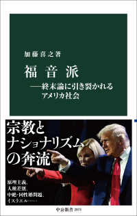 近年、巨大な影響力を誇るアメリカの福音派。独特の終末論的な世界観を持つ宗教集団・運動は、いつから勢力を拡大し、政治的・文化的闘争に関与していったのか。本書は、アメリカの人種差別や中絶・同性婚問題、イスラエルとの関係などに福音派がいかに関わったのかを描く。カーター、レーガン、クリントン、オバマら歴代大統領、そしてトランプたちとの交差も示し、超大国に深い亀裂が入った経緯と現在地を照らし出す。