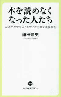 コンテンツ消費における〈コスパ〉〈タイパ〉という欲望は、読書においてはどのように作用しているのか。「本を読めなくなった人たち」はいま何を考え、どんな本音を抱いているのか。本書では、若い世代を中心に「本を読めなくなった人たち」を徹底取材。誰もが〈コスパ〉〈タイパ〉を無視できない現代社会の実情をリポートしながら、テキストメディアと読書の未来を考える。『映画を早送りで観る人たち』著者による待望の最新作!