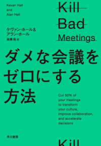 管理職や専門職は週に丸2日を会議に費やしている。もしその半分を根絶できるとしたら?なぜか職場で放置されがちな「会議のコスト」を徹底的に可視化、不必要な開催・議題・出席者を減らすためのフレームワークからファシリテーションの技法まで組織改革のプロが明快に説く。