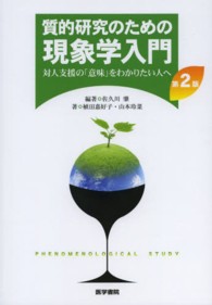医療従事者は広義に言えば支援者です。本書は、現象学を哲学の範疇から開放し、支援者がケアの原点を見つめるためのツールとして解説します。そして、本書の解説を理解することにより、あなたの質的研究の質を飛躍的に高めます。とっつきにくい印象がある現象学を、支援者の目線でゼロから学べる一冊です。