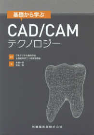 第1章 歯科用CAD/CAMシステムの現状第2章 CAD/CAMシステムの基礎的知識第3章 歯科用CAD/CAMシステムの構成第4章 歯科用CAD/CAMシステムで使用する材料第5章 歯科用CAD/CAMシステムの基礎的研究第6章 歯科用CAD/CAMシステムの臨床応用第7章 歯科用CAD/CAMシステムのソリューション化第8章 歯科用CAD/CAMシステムに関するエビデンス第9章 歯科用CAD/CAMシステムの将来展望