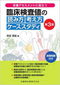 栄養アセスメントに役立つ臨床検査の知識、検査値を的確に解釈する力が身につく!豊富な症例から、臨床検査値を基にした栄養食事指導のポイントがわかる!演習問題と管理栄養士国家試験問題の出題例を多数掲載!